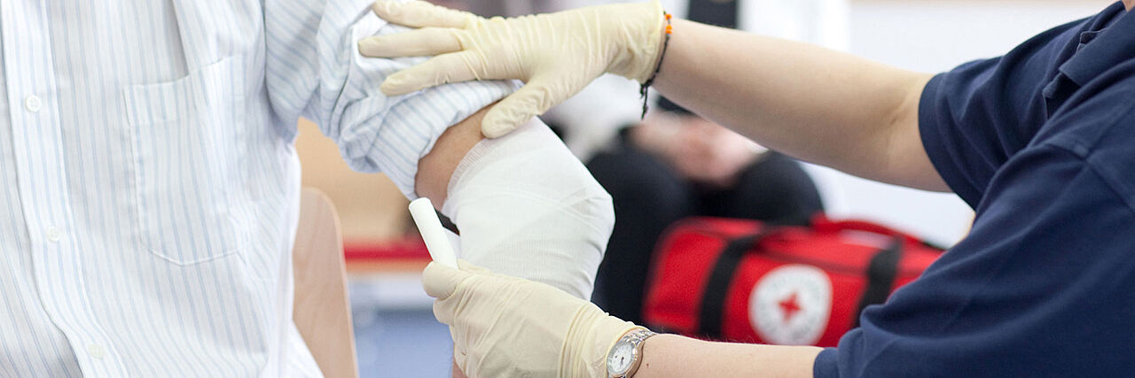 • Offener Bruch: sofort mit keimfreien Wundauflagen oder Verbandtuch bedecken.